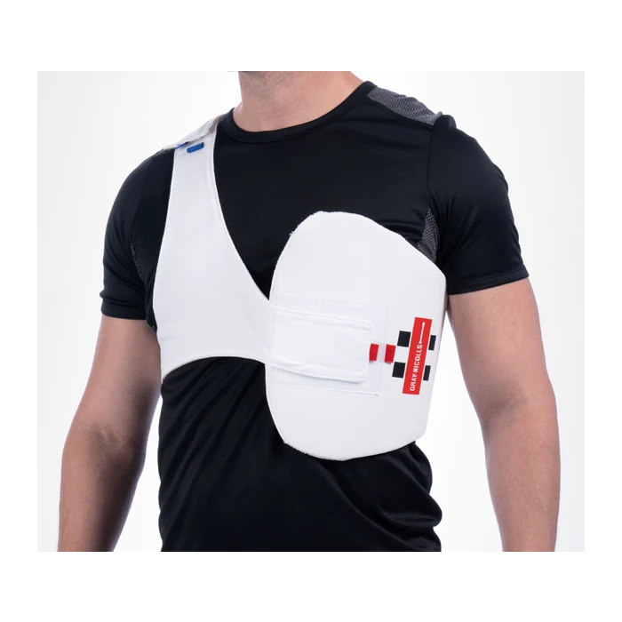 The Upper Body Guard comes with an ingenious colour coordinated strap system that makes the protection easy to fit, even when in a rush to get your gear on. The strap is secure and comfortable, so much so that you’ll forget you are wearing it by the time you reach the wicket.